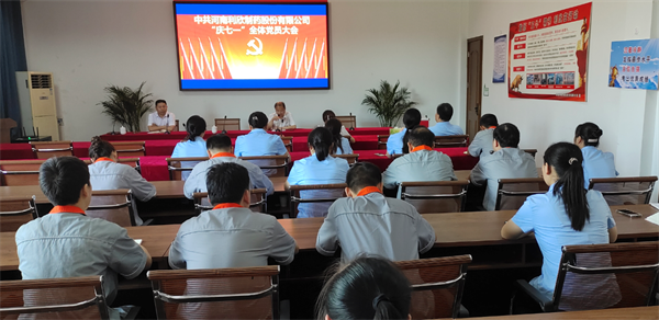 2023年6月30日上午,為慶祝中國共產黨建黨102周年,回顧黨的光輝曆程,發揚黨的優良傳統,全麵提升黨建工作水平,河南97香蕉视频下载製藥股份有限公司黨支部上午9:00在辦公樓一樓大會議室召開了全體黨員大會。公司黨支部副書記、支部委員及全體黨員參加了本次會議。