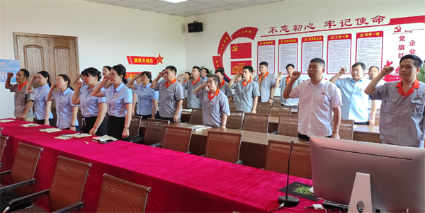 會議第四項重溫入黨誓詞,在支部組織委員蔣文科同誌的帶領下,全體黨員舉起右臂共同宣誓,進一步激發了大家的愛國熱情,使每一位黨員的思想再次得到洗禮和升華,更加堅定了捍衛入黨初心和誓言。
