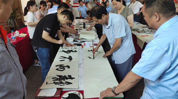 筆會現場,藝術創作氛圍濃厚,書畫家們潑墨揮毫,盡展風采,將自己的創作功底和藝術感染力都呈現在一幅幅作品中,由衷表達了慶祝建黨102年的喜悅之情,更抒發了愛黨、愛國、愛家鄉的情懷。